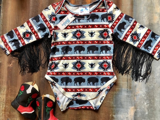 Buffalo With Fringe Long Sleeve Onesie