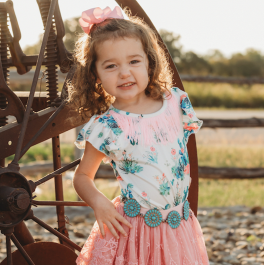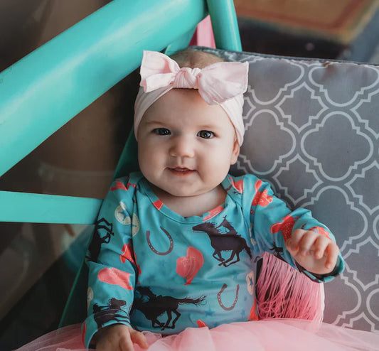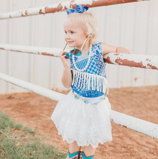 Turq Cowgirl With Fringe Long Sleeve Onesie