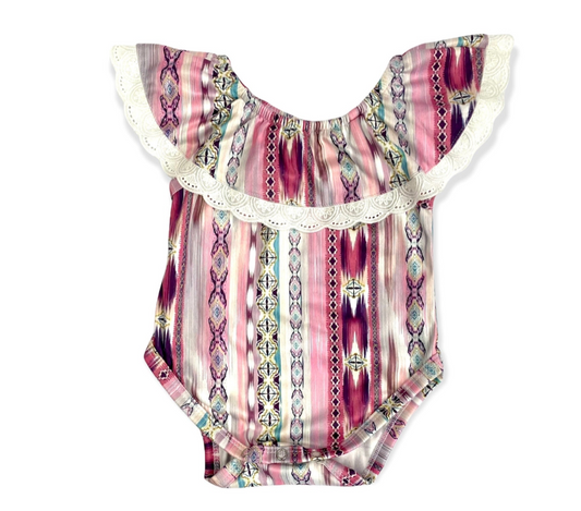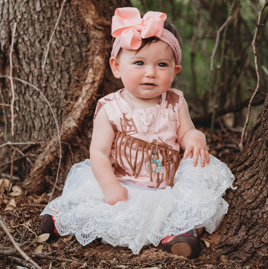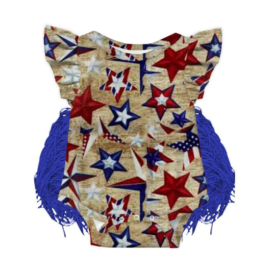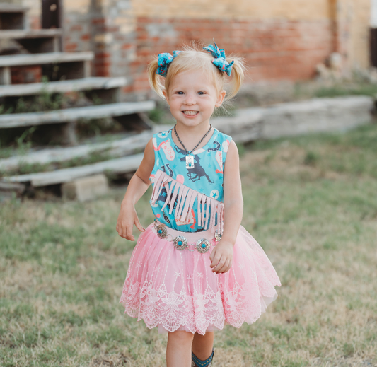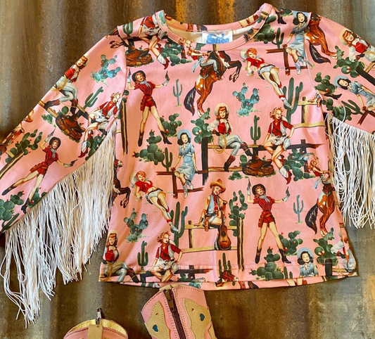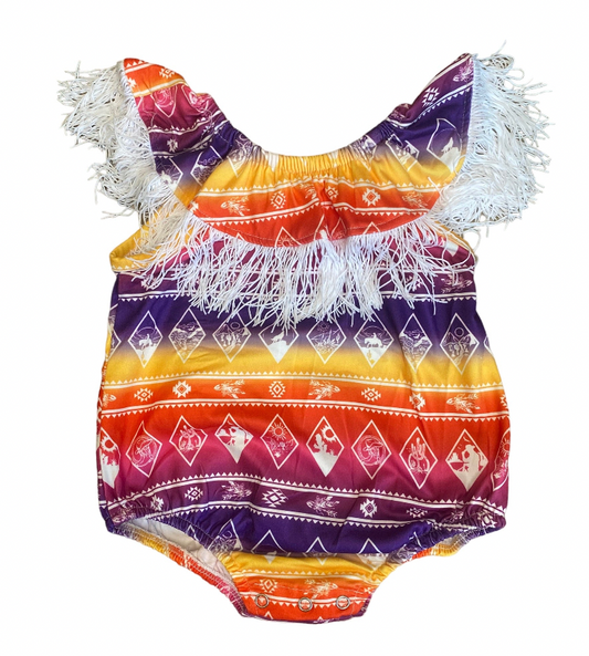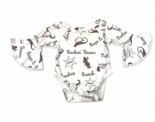 Texas Print Long Sleeve With Blue Fringe Onesie